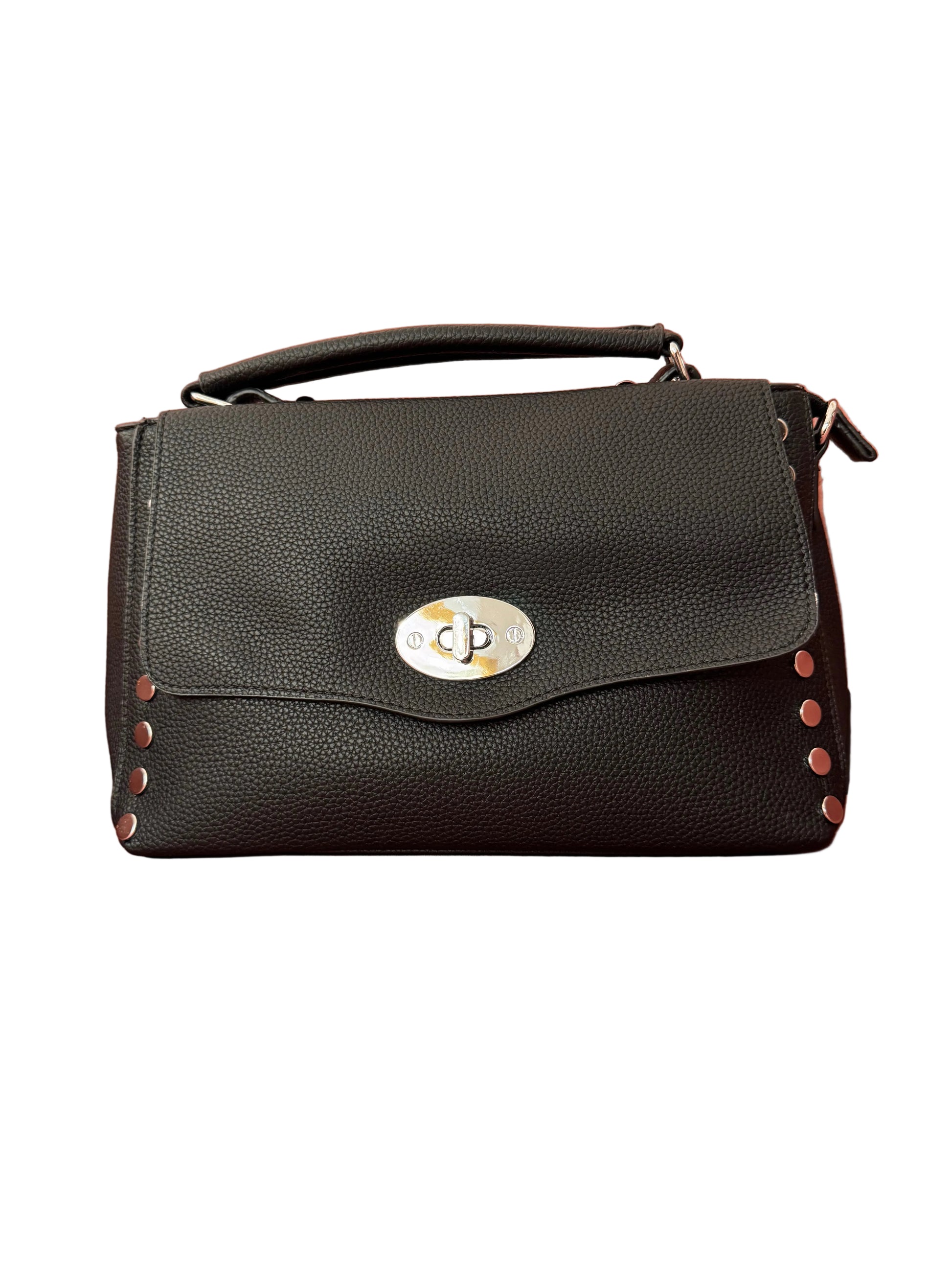 I dettagli borchiati in Silver sui lati le conferiscono un design di tendenza! È realizzata in morbida Similpelle e la tracolla è inclusa, (staccabile e regolabile).